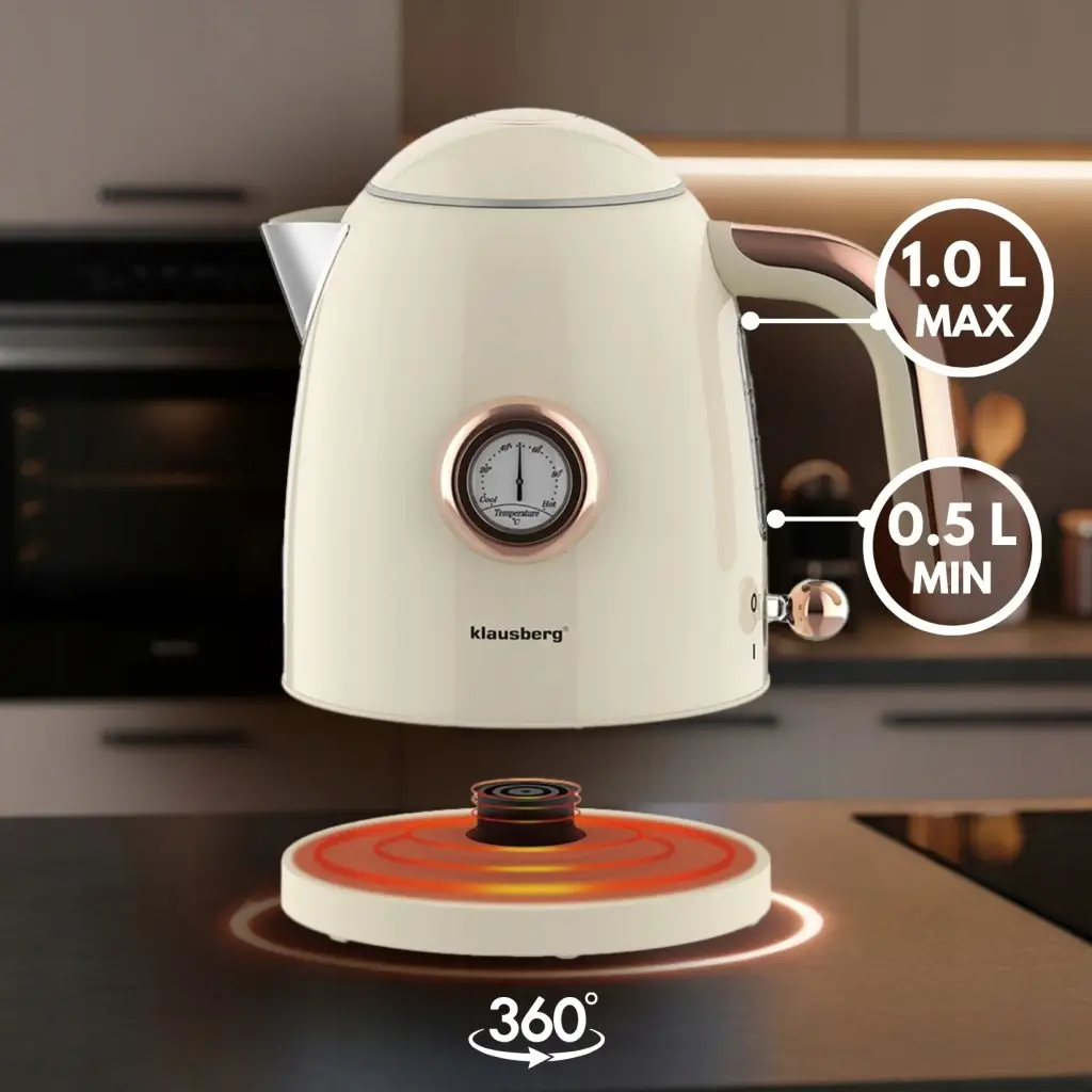 Czajnik elektryczny 1.0L Retro termometr Bezprzewodowy Klausberg KB-9018