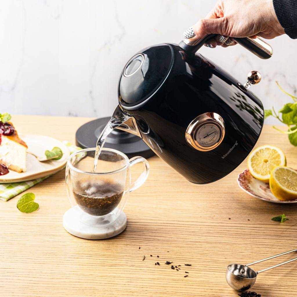 Model KLAUSBERG KB-9017 to elegancki czajnik elektryczny w stylu retro, który łączy kompaktowy rozmiar z funkcjonalnością i wyjątkowym designem ✨